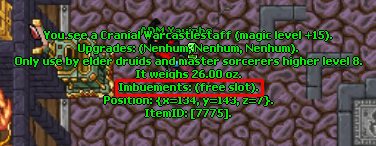 Após abrir um slot, ficará a descrição em seu item: Imbuements: (Free Slot)